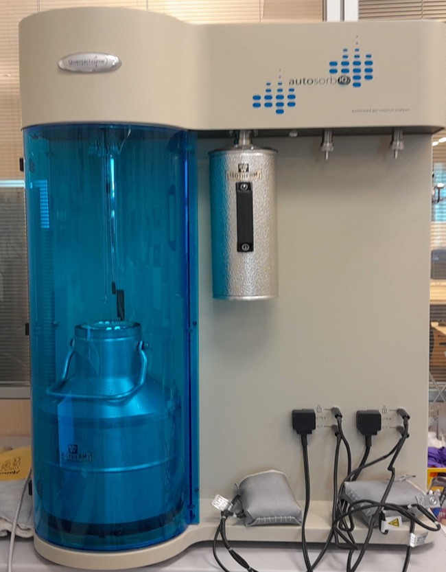 Thermogravimetric analysis (TGA) is used to measure changes in the weight of a sample as a function of temperature while the sample is subjected to a controlled temperature program in a controlled atmosphere. It is commonly used to characterize the thermal stability, composition, and decomposition kinetics of materials. Nitrogen adsorption-desorption isotherms at -196 °C are used to characterise the porosity and surface area of materials. ICP-OES (Inductively Coupled Plasma Optical Emission Spectroscopy) is used to determine the elemental composition of materials. UV-accelerated weathering tester is used to simulate the effects of sunlight exposure on materials. These chambers are designed to subject samples to controlled levels of ultraviolet (UV) radiation, temperature, and humidity, replicating the conditions that materials experience when exposed to outdoor environments over extended periods. Salt spray testing is a standardised method used to evaluate the corrosion resistance of materials and coatings.
