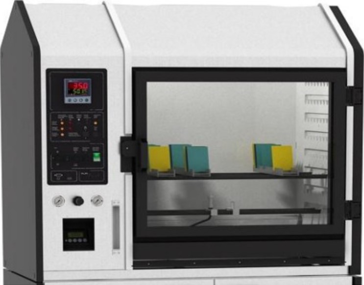 Chamber used for salt spray and cyclic corrosion testing, a standardised method to check corrosion resistance of metals/alloys and inorganic and organic coatings Used to evaluate the uniformity of thickness and degree of porosity of metallic and non-metallic protective coatings