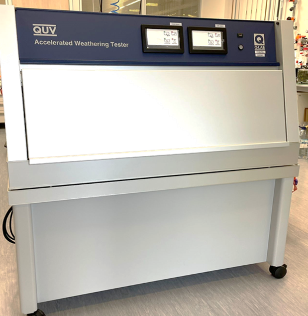 QUV accelerated weathering tester To simulate outdoor weathering, the QUV tester exposes materials to alternating cycles of UV light and moisture at controlled, elevated temperatures.