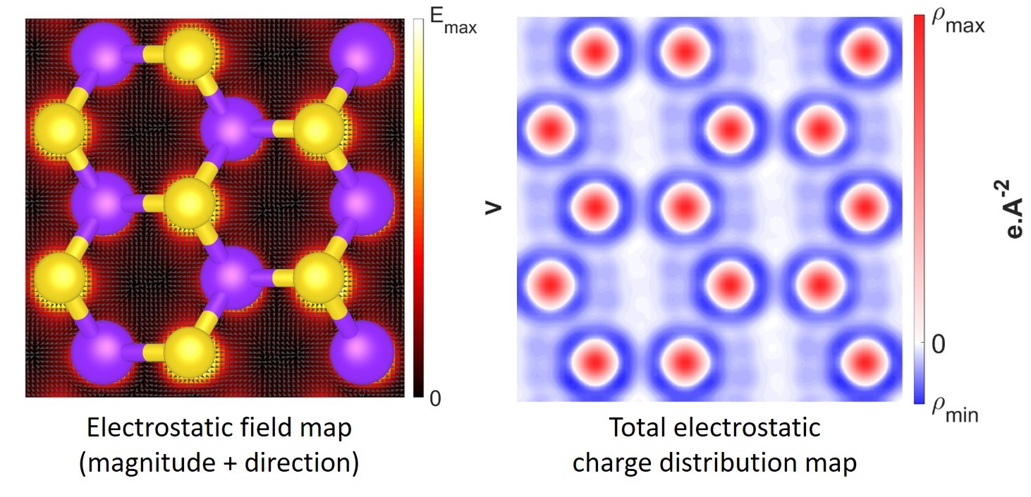 Electrostatic field map and charge distribution map in MoS2 using diffraction phase contrast